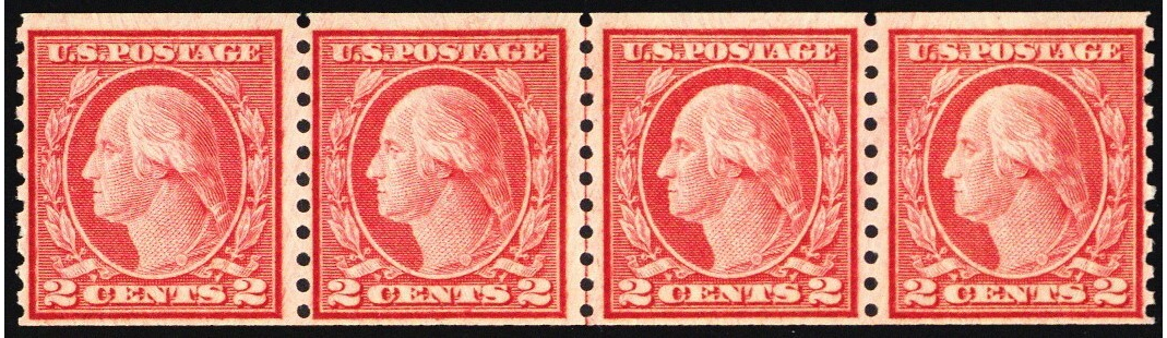 492, Mint NH 2¢ Coil Line Strip of Four CV $153 ** Stuart Katz