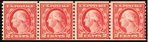 492, Mint NH 2¢ Coil Line Strip of Four CV $153 *** Stuart Katz