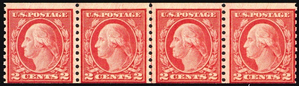 492, Mint NH 2¢ Coil Line Strip of Four CV $153 __ Stuart Katz