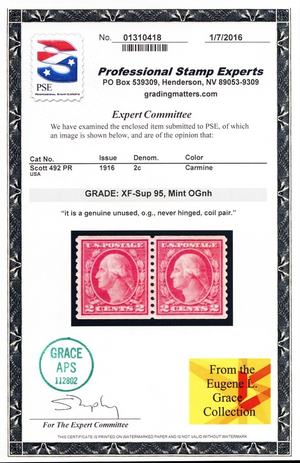 492, Mint NH XF/Superb 2¢ Coil Pair - PSE Graded 95 * Stuart Katz