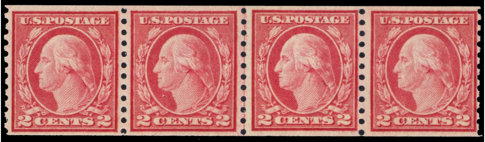 492, Mint VF NH 2¢ Coil Line Strip of Four Stamps -- Stuart Katz