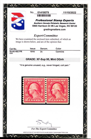 492, Mint XF/Superb NH 2¢ Pair - Graded 95 PSE Certificate - Stuart Katz