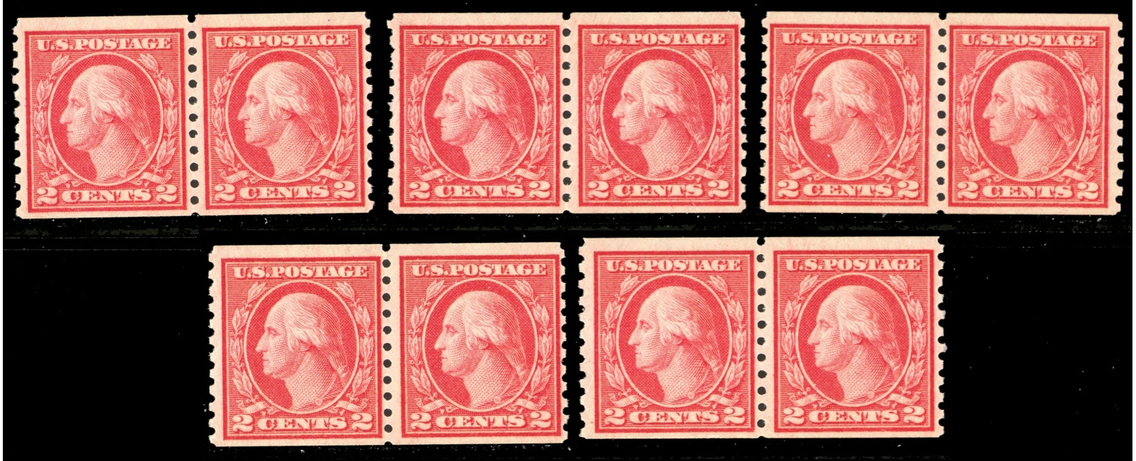492, MNH WHOLESALE Group of Five Coil Pairs - Very Fresh! CV $275 - Stuart Katz