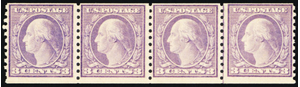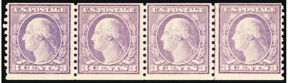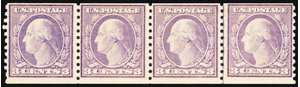 493, Mint NH 3¢ Coil Line Strip of Four Stamps CV $305 - Stuart Katz