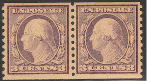 Scott #493 VF MNH OG pair of type I variety of the 3 cent Washington coil perfed vertically. Very fresh with great gum.