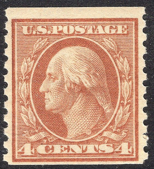 F-VF MNH OG copy of Scott #495 4-cent Washington coil issue perfed vertically. Very fresh color