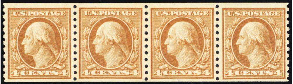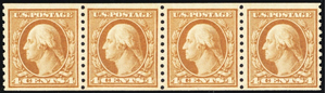495, Mint NH F-VF 4¢ Very Fresh Coil Strip of Four -- Stuart Katz