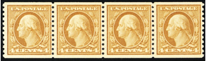 495, Mint NH F-VF 4¢ Very Fresh Coil Strip of Four - Stuart Katz