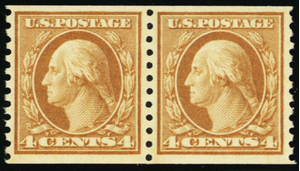 495, Mint VF NH 4¢ Coil Pair Very Well Centered! -*- Stuart Katz