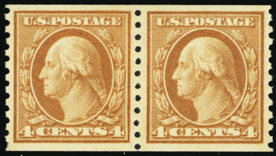 495, Mint XF NH 4¢ Coil Pair Very Well Centered! --- Stuart Katz