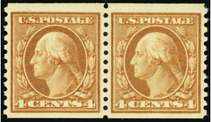 495, Mint XF NH 4¢ Coil Pair Very Well Centered! *** Stuart Katz