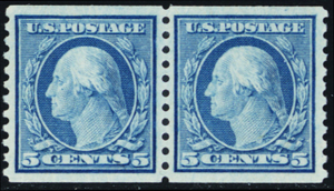 496, Mint XF/Superb NH 5¢ Coil Pair * Stuart Katz Description: