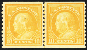 497, Mint NH 10¢ - Coil Line Pair - Bright Color SCV $260.00 - Stuart Katz