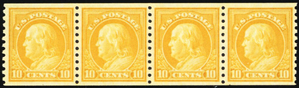 497, Mint VF NH 10¢ Coil Strip of Four Stamps CV $170 - Stuart Katz