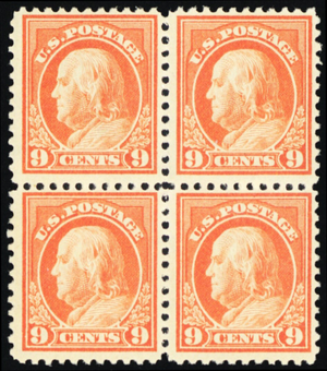509, Mint FVF NH 9¢ Block of Four Franklin Stamps CV $100.00 * Stuart Katz