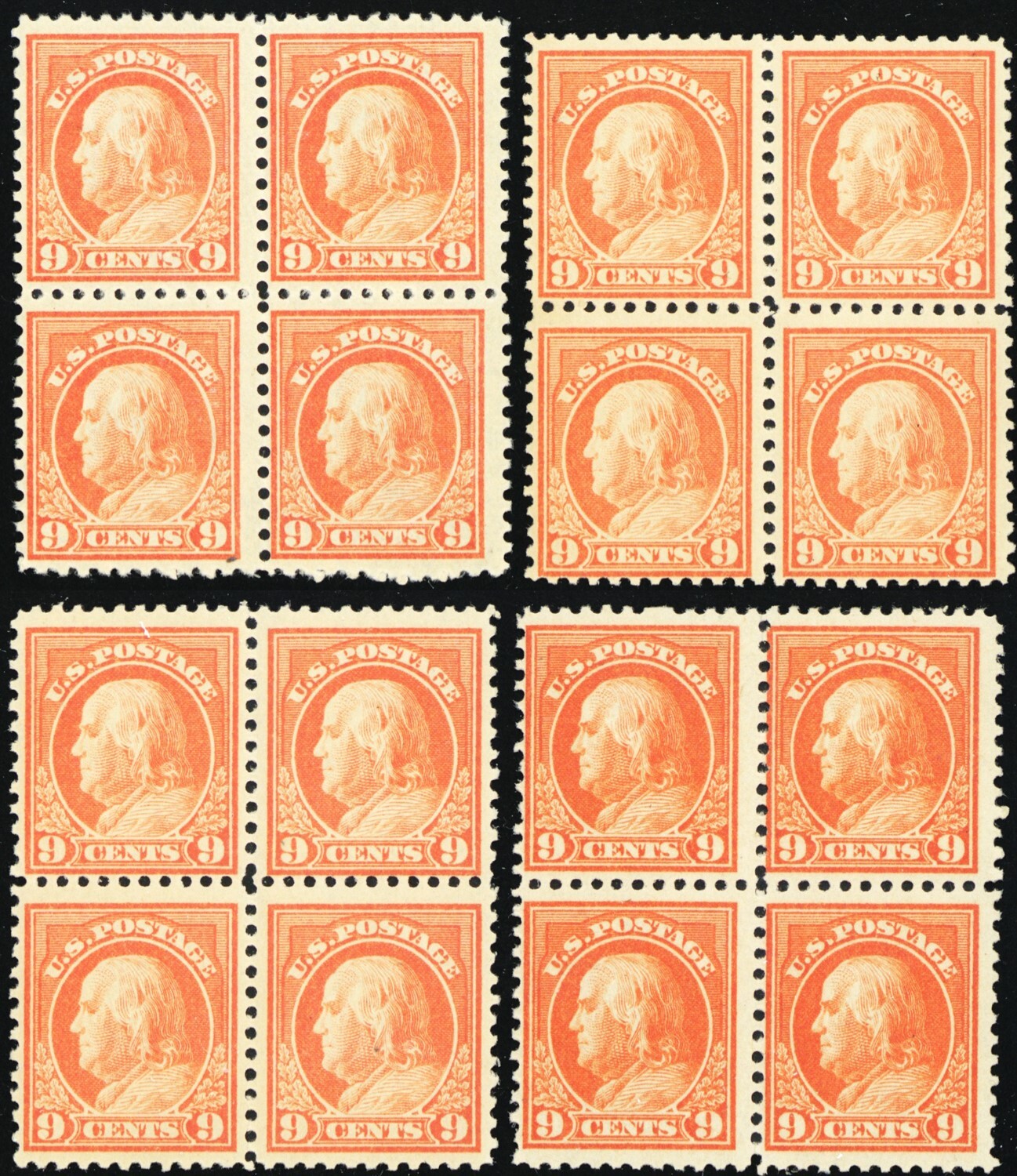 509, Mint FVF NH 9¢ Four Blocks of 4 Franklin Stamps CV $400.00 ** Stuart Katz