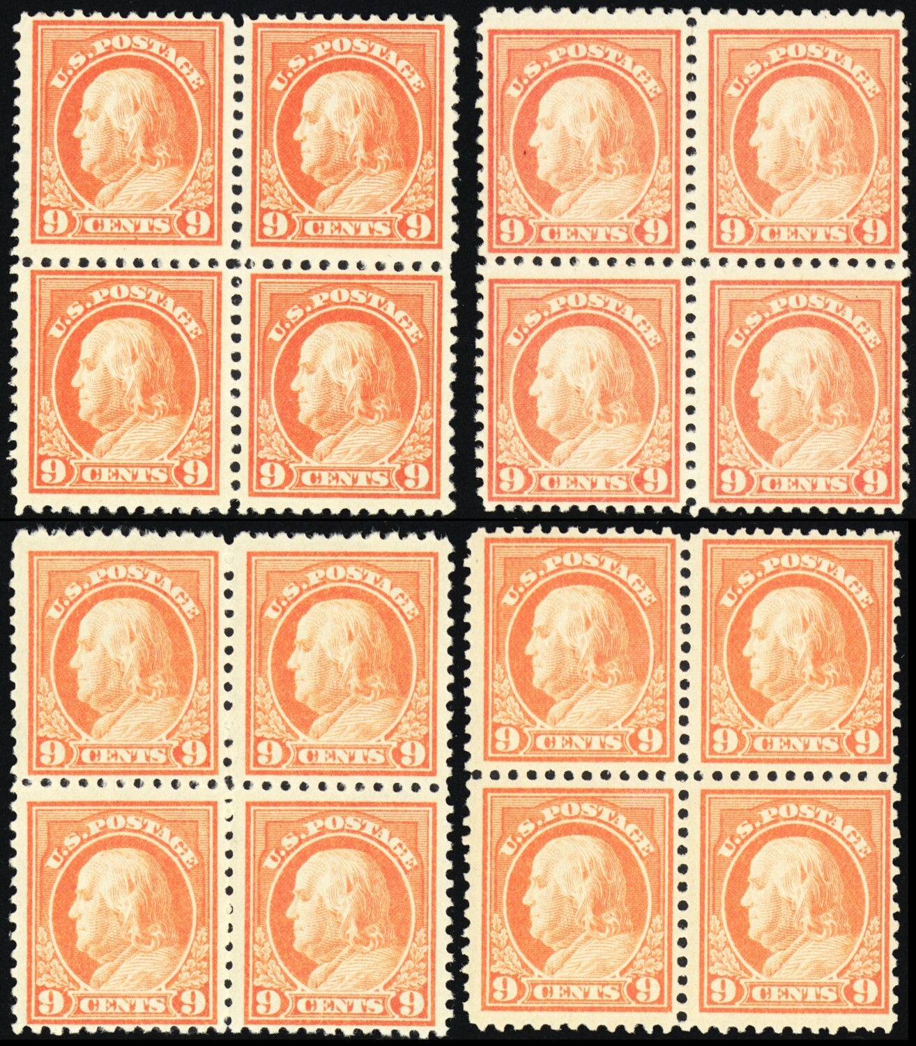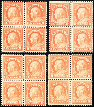 509, Mint FVF NH 9¢ Four Blocks of 4 Franklin Stamps CV $400.00 * Stuart Katz