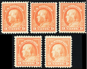 509, Mint FVF NH 9¢ Franklin Five Fresh Stamps CV $125 - Stuart Katz