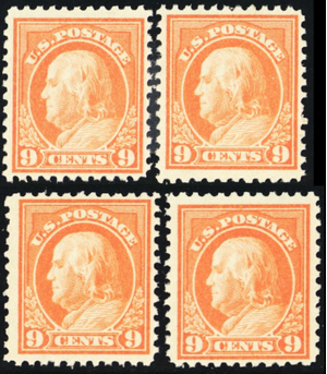 509, Mint FVF NH 9¢ Franklin Four Fresh Stamps CV $100 - Stuart Katz