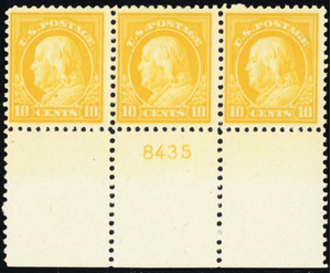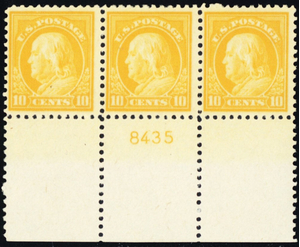 510, Mint NH 10¢ PL# Strip of Three - Very Fresh! * Stuart Katz