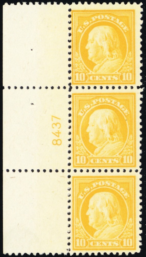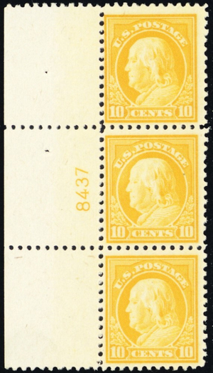 510, Mint NH 10¢ PL# Strip of Three - Very Fresh! - Stuart Katz