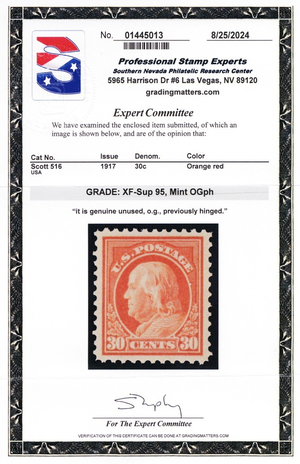 516, Mint LH 30¢ With Graded 95 PSE Certificate - Stuart Katz