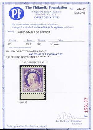 517, Mint XF/Superb NH - With Graded 95 PFC Certificate * Stuart Katz