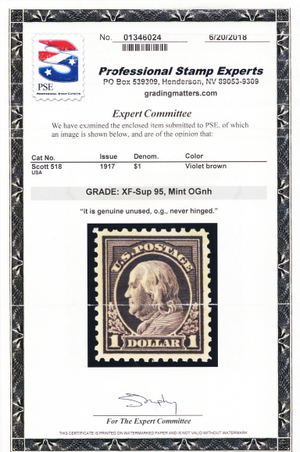 518, Mint XF/Superb NH $1 With Graded 95 PSE Certificate - Stuart Katz