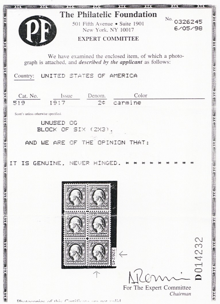 519, Mint NH 2¢ RARE STAMP! - With PFC Certificate - Stuart Katz