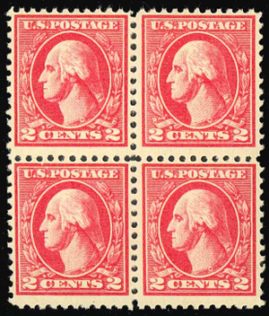527, VF NH 2¢ Washington Block of Four Cat $160.00 - Stuart Katz