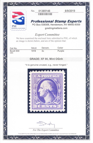 530, Mint XF NH - With Graded 90 PSE Certificate - Stuart Katz