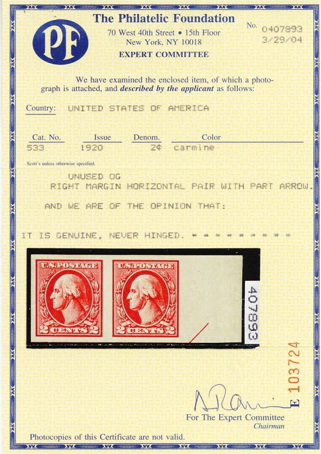 Obtaining certificates of authenticity for stamps: