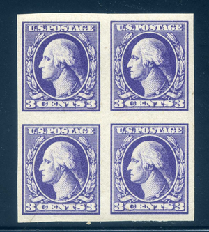 535, 3¢ Offset Washington, block of 4, Mint NH, Scott $75