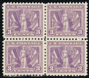 537, Mint 3¢ VF NH Block of Four Liberty Stamps Cat $80.00+ -- Stuart Katz