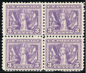 537, Mint 3¢ VF NH Block of Four Liberty Stamps Cat $80.00+ - Stuart Katz
