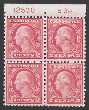Scott #540 F-VF MNH OG Perf 11 X 10 2-cent George Washington coil waste issue. This is a beauty of a top Plate block with the S30 marking and as most serious collectors know coil waste stamps like the 538's are seldom centered nicely. Fresh with nice margins. Only the top stamps have a hinge mark.