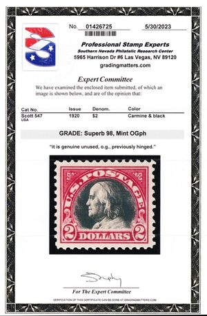 547, Mint Superb LH $2 With Graded 98 PSE Certificate - Stuart Katz