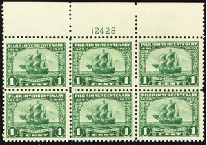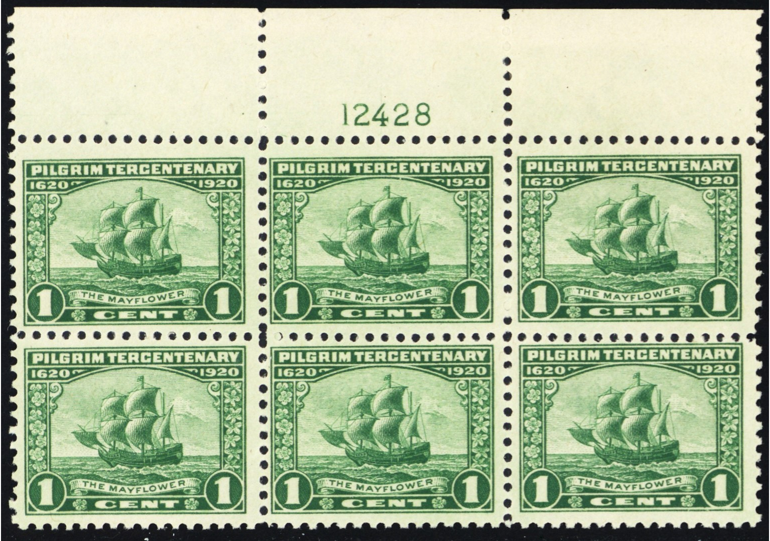 548, Mint H 1¢ Plate Block of Six - Mayflower SCV $70 - Stuart Katz
