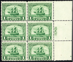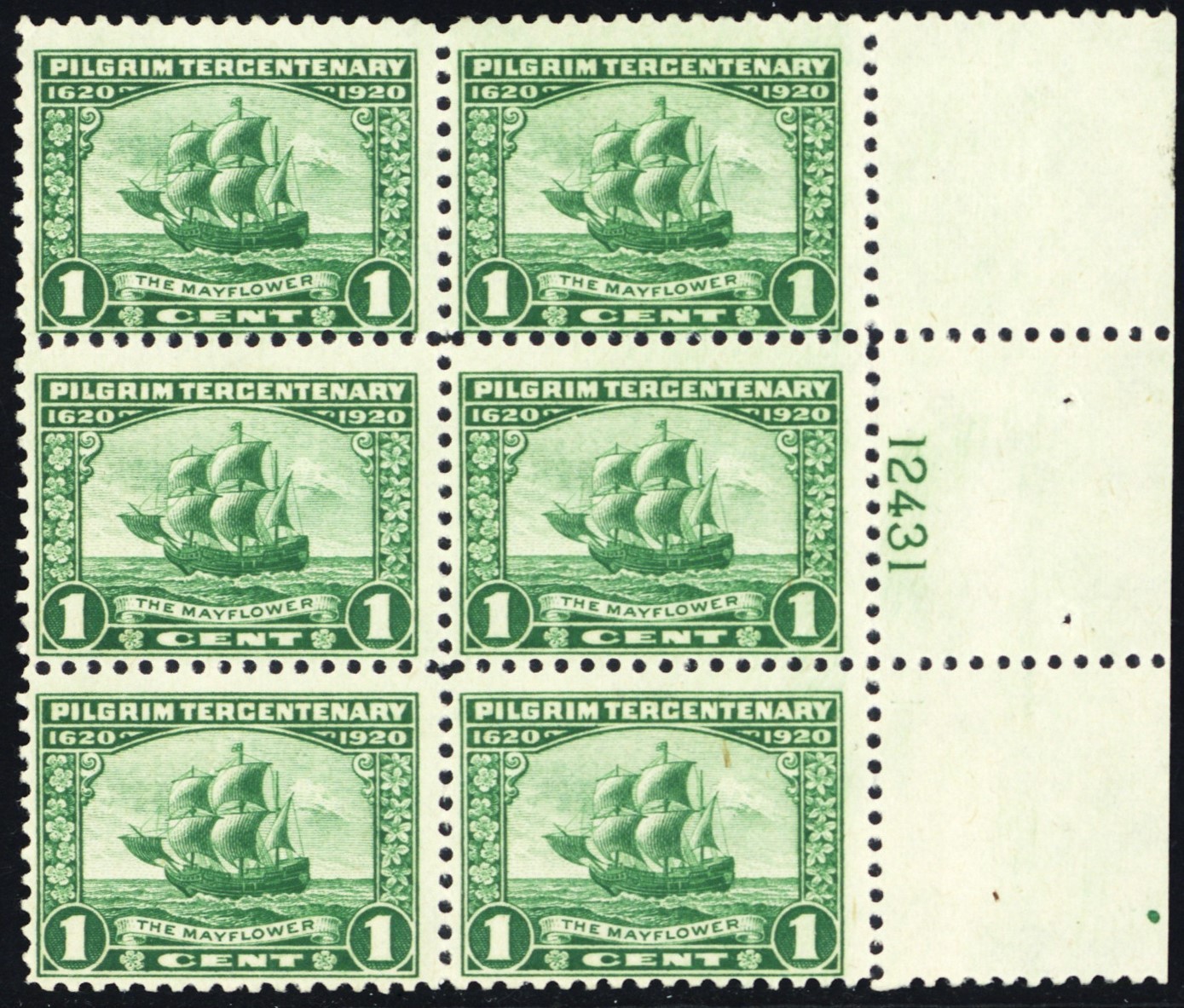 548, Mint LH 1¢ Plate Block of Six - Mayflower SCV $70 ** Stuart Katz