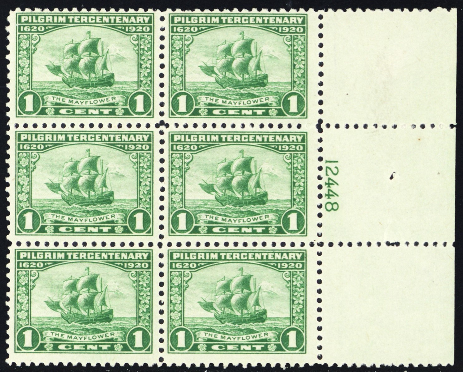 548, Mint LH 1¢ Plate Block of Six - Mayflower SCV $70 -*- Stuart Katz