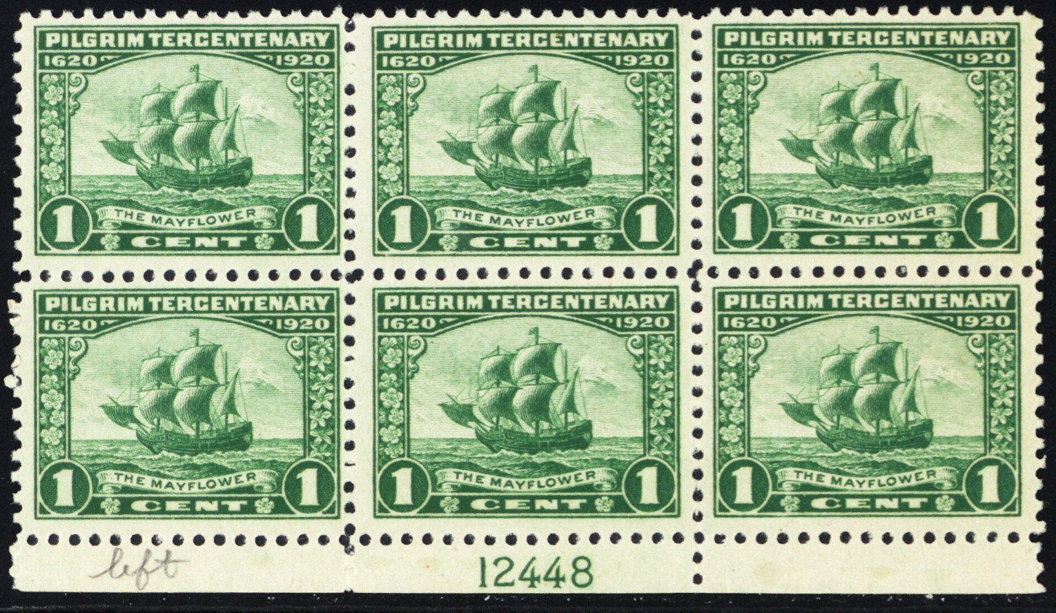 548, Mint NH 1¢ Plate Block of Six - Mayflower SCV $115.00 *_* Stuart Katz