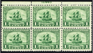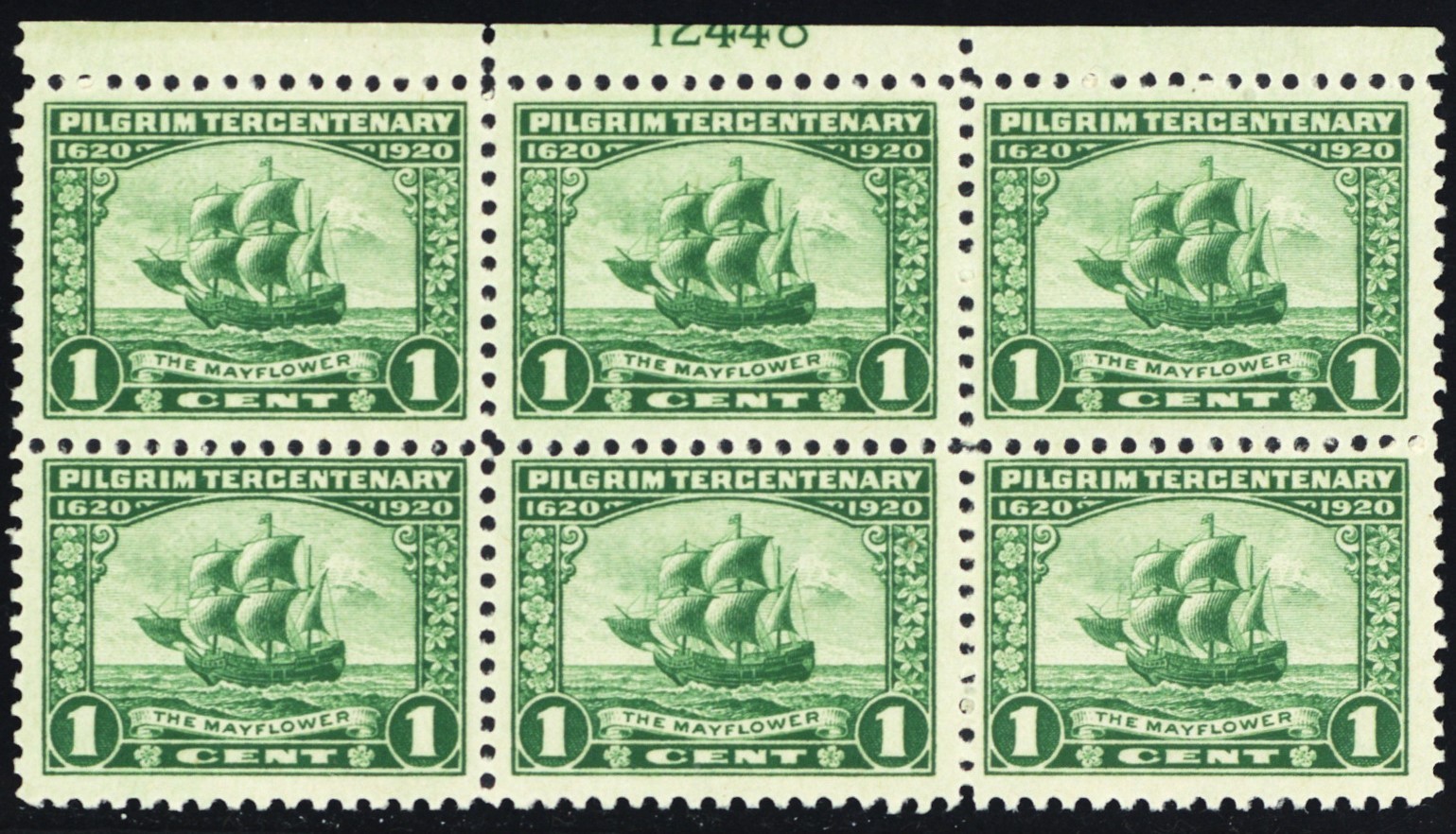 548, Mint NH 1¢ Plate Block of Six - Mayflower SCV $115.00 - Stuart Katz