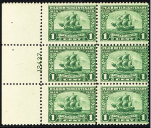 548, Mint NH 1¢ Plate Block of Six - Mayflower SCV $115.00 * Stuart Katz