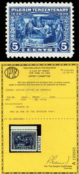 Due to the high cost of obtaining certificates we will only refund the cost of the stamp and not the cost of the certificate for stamps that sell for less than $250 that come back with a negative certificate. Stamps that sell for above $250 will receive a full refund for both the price of the stamp and cost of the certificate if it should come back not as described. For U.S. stamps only certificates from either APS, PSE or from the Philatelic Foundation are accepted, however "graded" certificates or "encased" items are not accepted.