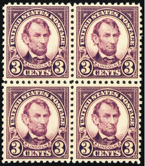 555, Mint VF NH 3¢ Block of Four Lincoln Stamps CV $110.00 ** Stuart Katz