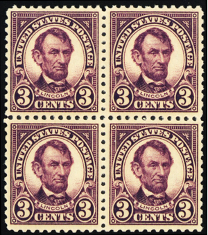 555, Mint VF NH 3¢ Block of Four Lincoln Stamps CV $110.00 * Stuart Katz
