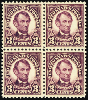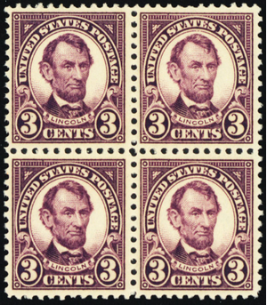 555, Mint VF NH/H 3¢ Block of Four Lincoln Stamps CV $95.50 * Stuart Katz
