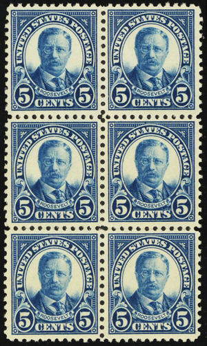557, Mint NH F-VF 5¢ - Block of Six Stamps CV $210. * Stuart Katz