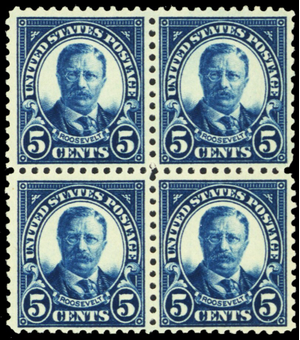 557, Mint NH VF 5¢ Roosevelt Block of Four -- Stuart Katz