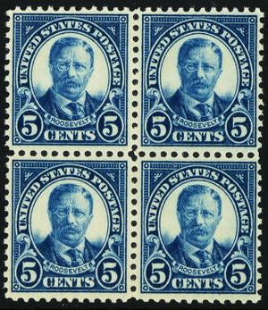 557, Mint VF NH 5¢ Block of Four Stamps CV $140.00 - Stuart Katz